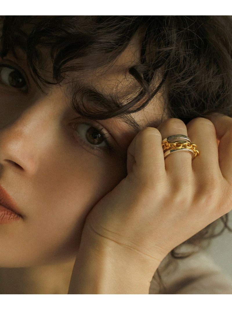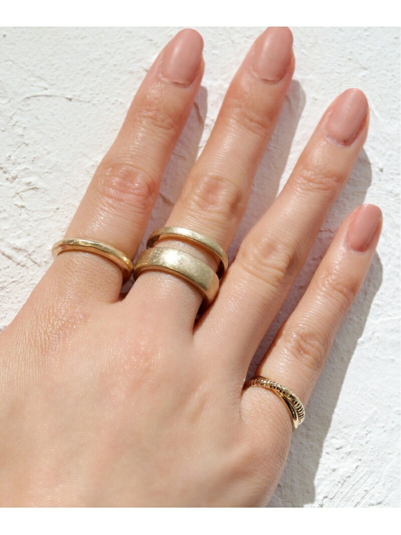 平打ちはアームの断面が平らになっているタイプを指します。平打ちの指輪はラインがきれいに見えて、幅や厚みによって雰囲気の違いを楽しむことができます。