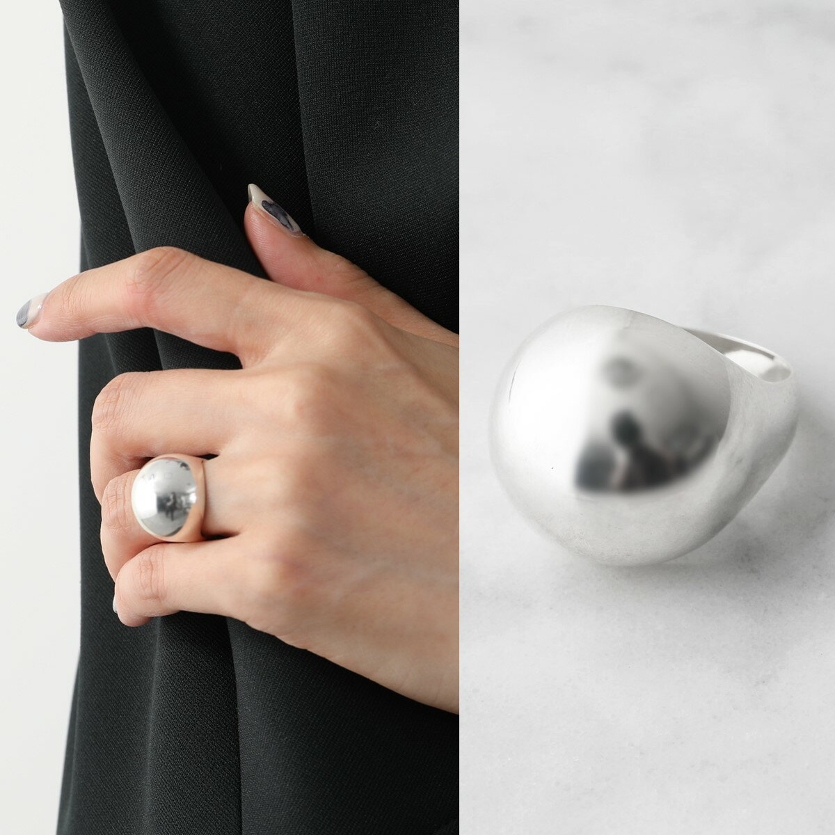 幅広の指輪を親指につければ、インパクトを与えることができるので、ぐんとおしゃれさが増します。