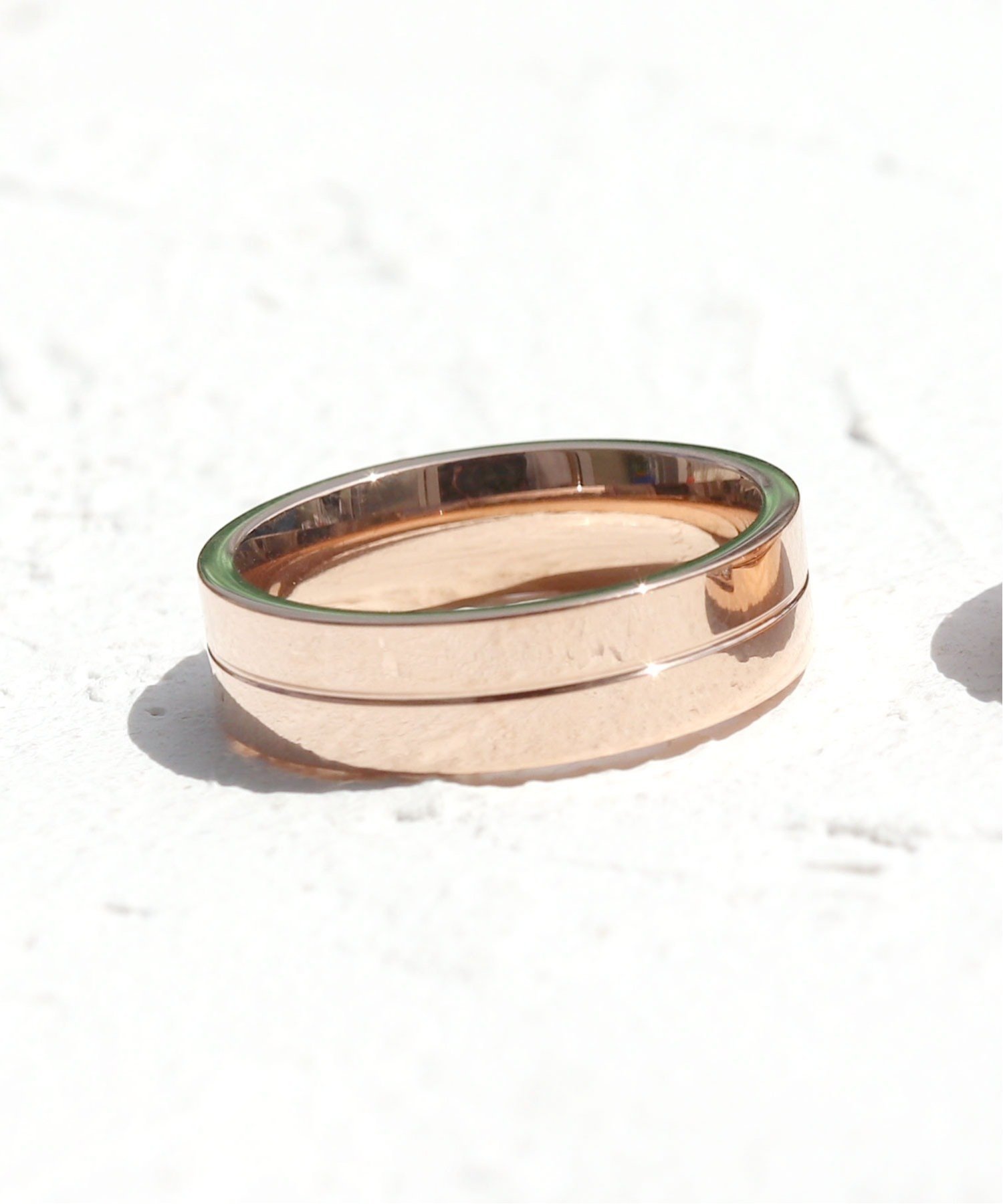 平打ちはアームの断面が平らになっているタイプを指します。平打ちの指輪はラインがきれいに見えて、幅や厚みによって雰囲気の違いを楽しむことができます。