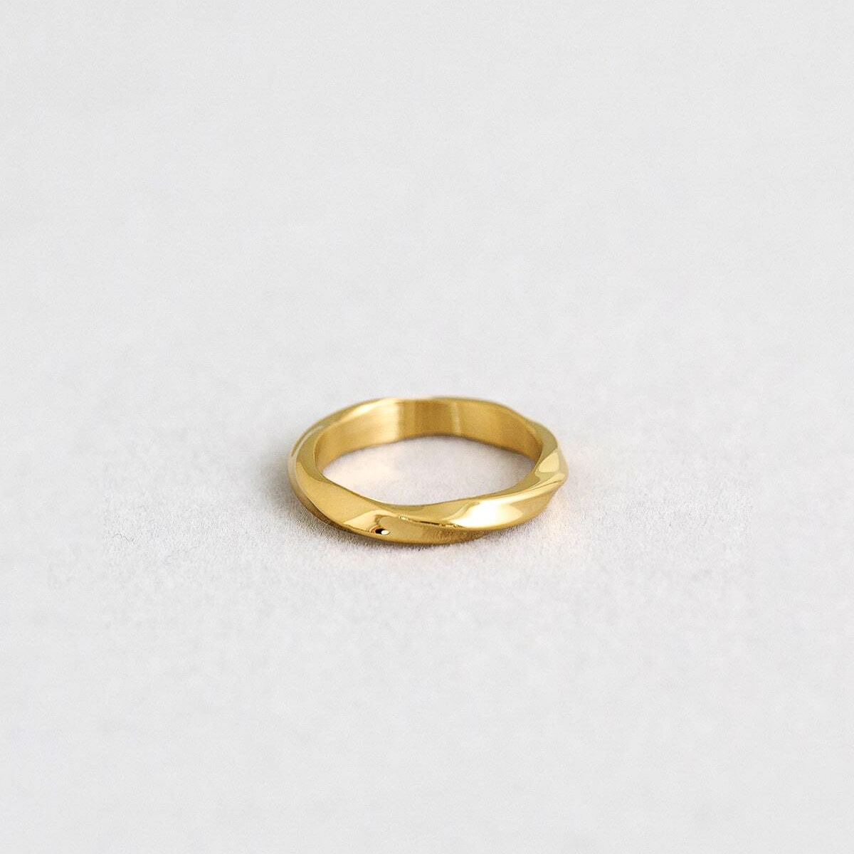 平打ちはアームの断面が平らになっているタイプを指します。平打ちの指輪はラインがきれいに見えて、幅や厚みによって雰囲気の違いを楽しむことができます。