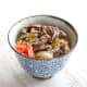 白たきを入れて満足感をアップ。食物繊維たっぷりの白たきに甘辛タレがしっかりしみて、牛丼にひけをとらないおいしさです。