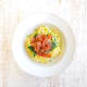 たっぷりの水菜とトマトの酸味が美味しい冷製パスタです。